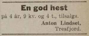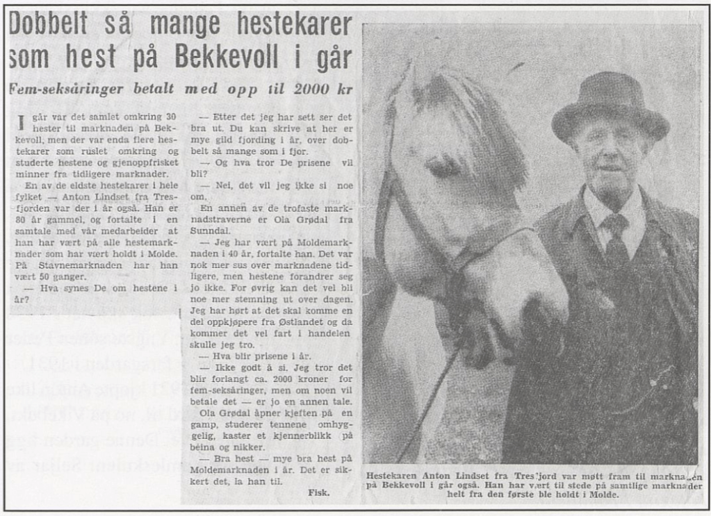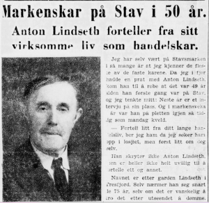 «…Min morfars favoritthistorie var om en arbeidskar de hadde en sommer som var nokså lat. Han var vanskelig å få opp om morgenen og ville helst ligge og sove. Etter middag skjenket min oldefar, Anton Lindset, som var hestehandler, dram til arbeidsfolket. Én dram til hver, var regelen. Da han kom til latsekken, ble det bare skjenket en halv dram. «Halv kar skal ha halv dram», sa oldefar.» (Hans Martin Moxnes, Anton sitt oldebarn, kronikk i Bergensavisen/Vest24.no)