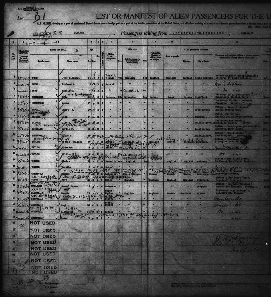 Jakob utvandret til USA våren 1923. I reisedokumentene ser vi at han skulle til sambygdingen Lars Lindseth i Hoquiam, Washington state, et lite sted sørvest for Seattle.