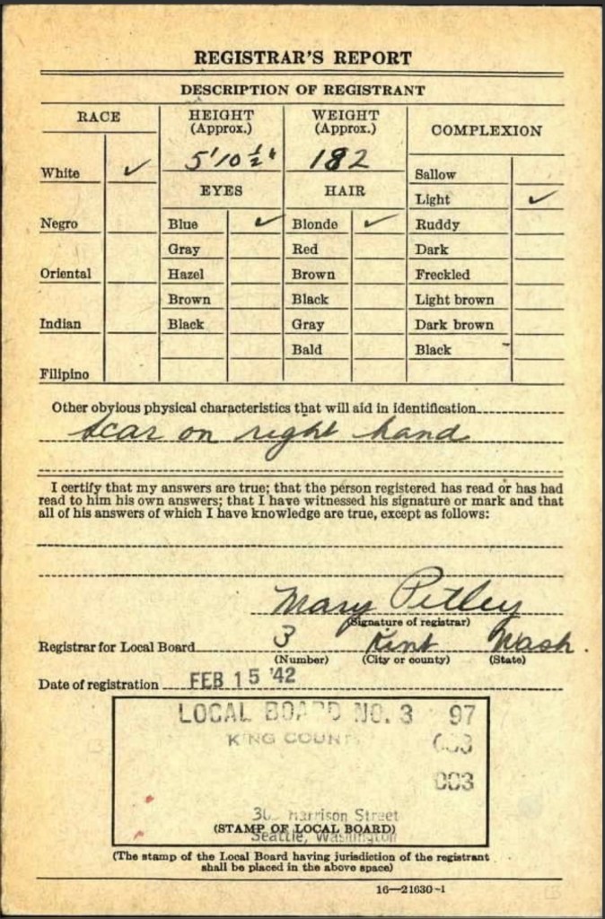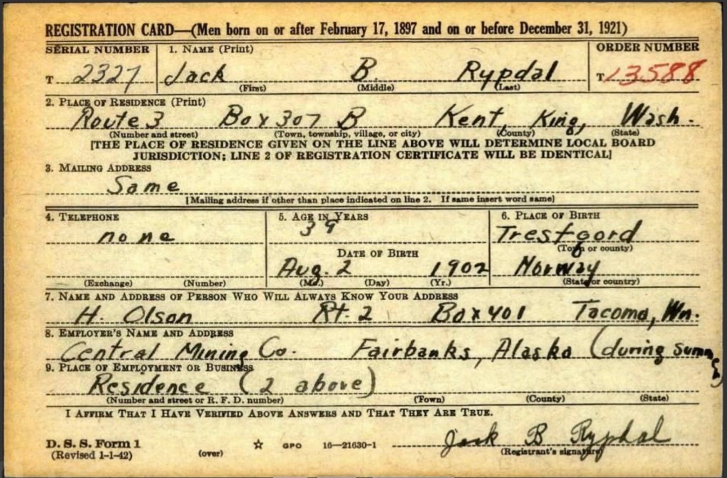 Under WW2 så vervet Jack seg:, og her ser vi at han arbeidet i Alaska sommers tid: